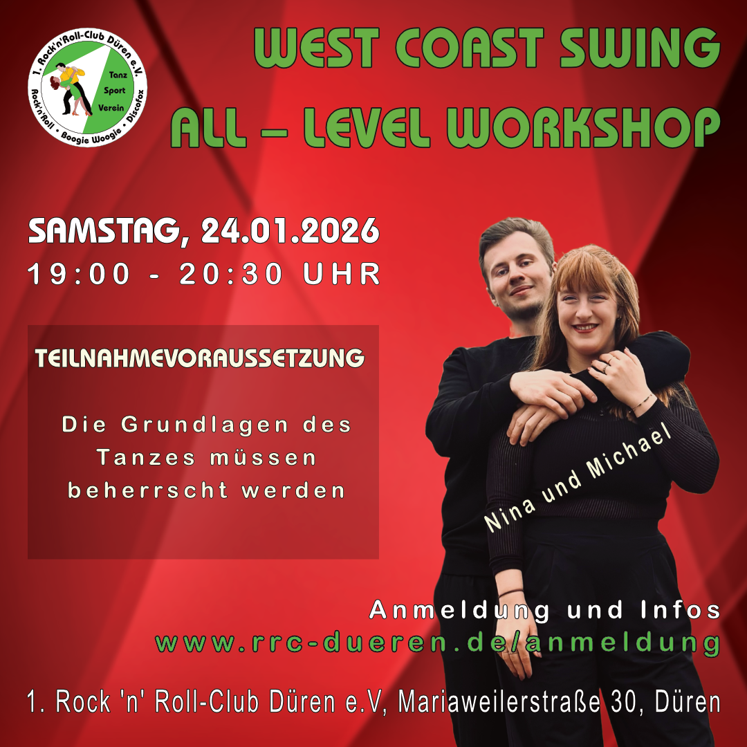 Grundlagen/Basics des West Coast Swing. Vom Grundschritt, über Führungstechnik, bis hin zu ersten einfachen Figuren und Figurenkombinationen. Darunter auch Drehungen, Wickelfiguren, kleine "Eyecatcher", etc.