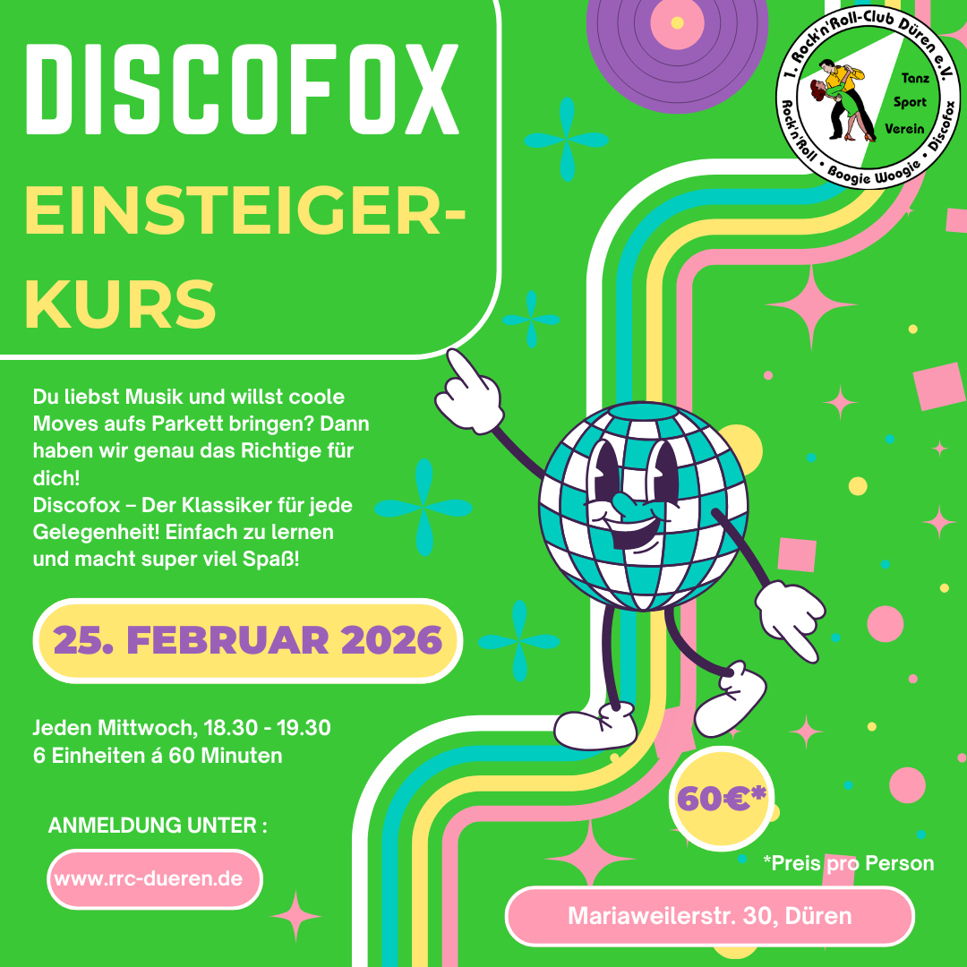 Grundlagen/Basics des Discofox. Vom Grundschritt, über Führungstechnik, bis hin zu ersten einfachen Figuren und Figurenkombinationen. Darunter auch Drehungen, Wickelfiguren, kleine "Eyecatcher", etc.